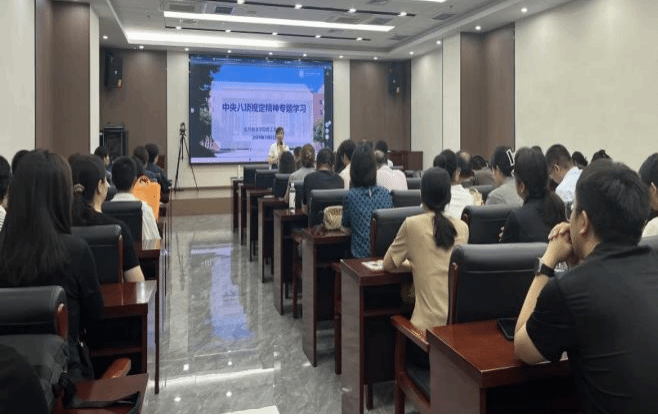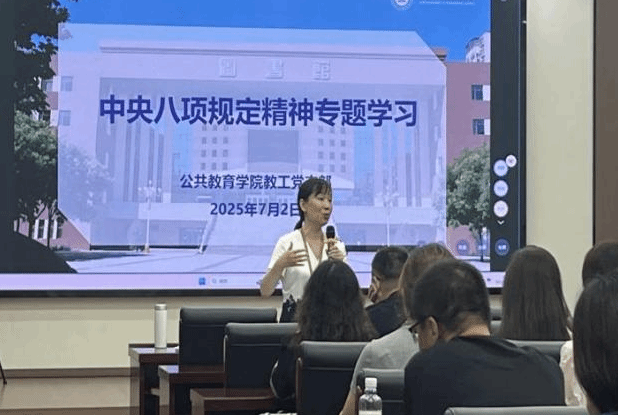 为深入贯彻落实“中央八项规定精神”的重要论述精神,扎实推进学校党委部署要求落地见效,公共教育学院党支部于2025年7月2日(星期三)上午9:30在会议中心第一会议室召开中央八项规定精神专题学习研讨会。党支部书记李小敏主持会议并作专题解析,支部委员及本支部的全体党员全程参与学习记录。